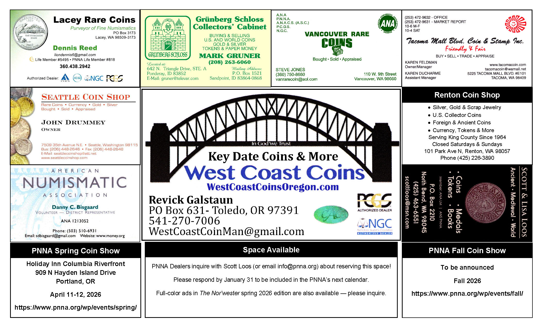 | PNNA Coin Show & Events Calendar |